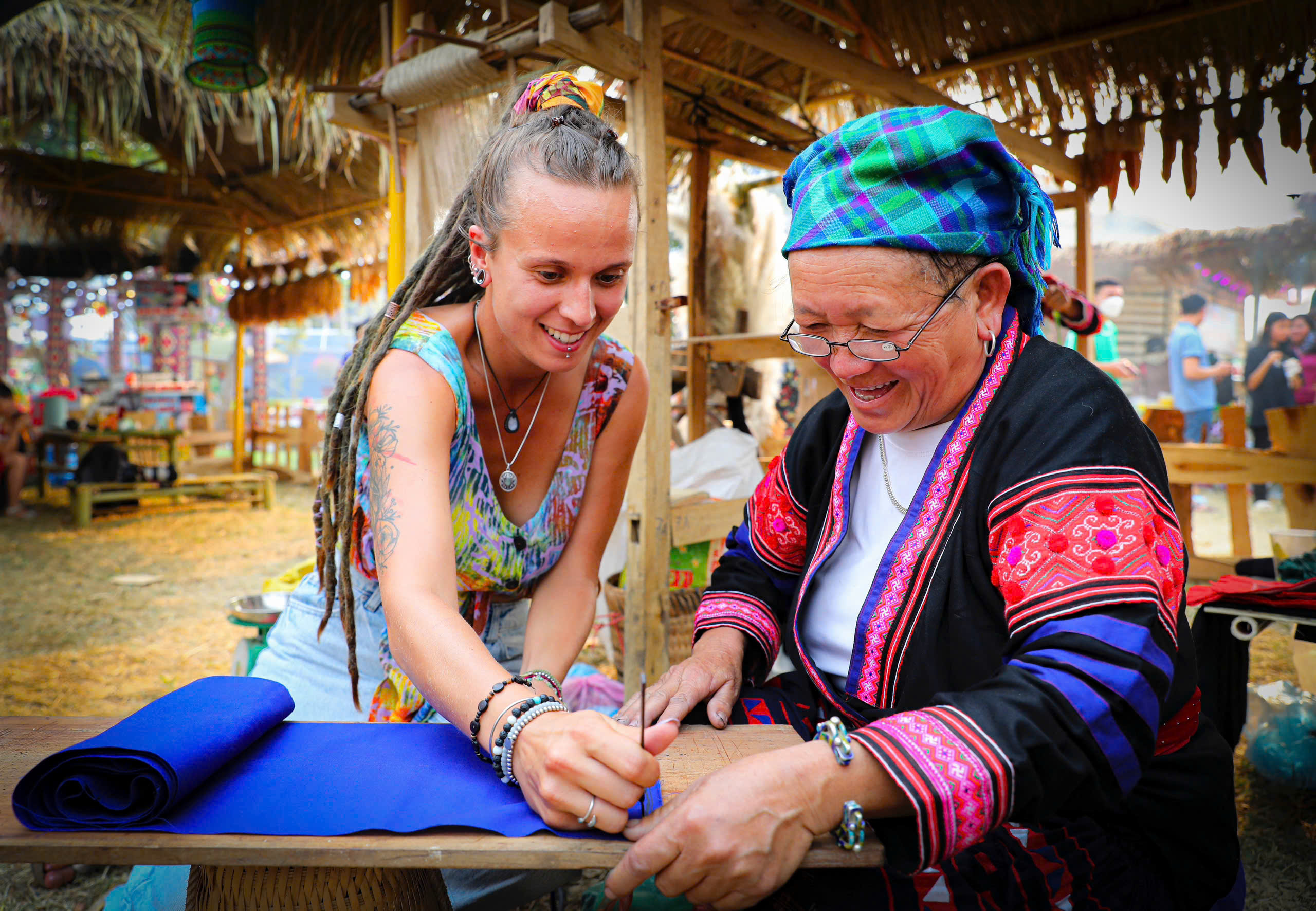 Du khách trải nghiệm tại Không gian Văn hoá vùng cao trong Lễ Hội Hoa Ban.Ảnh Trung tâm XTDL Điện Biên |