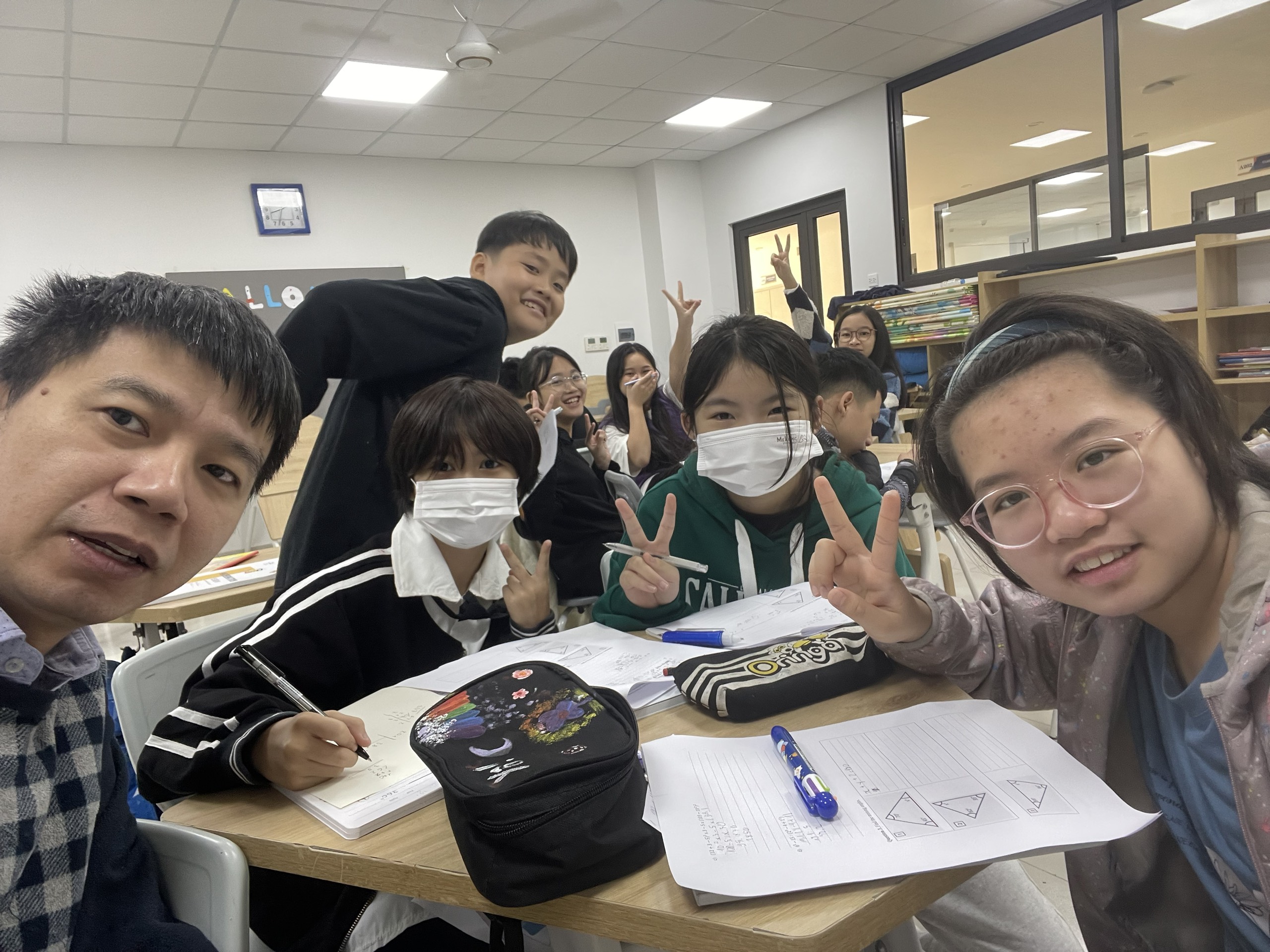 Thầy Lân và học sinh lớp 6 trong một giờ học toán. Ảnh HAS |