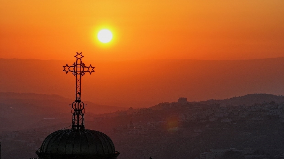 Mặt trời mọc trên Nhà thờ Giáng sinh trước khi Đức Hồng y Pierbattista Pizzaballa, Thượng phụ Latinh của Jerusalem, đến tham dự các sự kiện Giáng sinh ở Bethlehem, thuộc khu Bờ Tây do Israel chiếm đóng, ngày 24/12/2025. Ảnh: REUTERS/Yosri Aljamal |