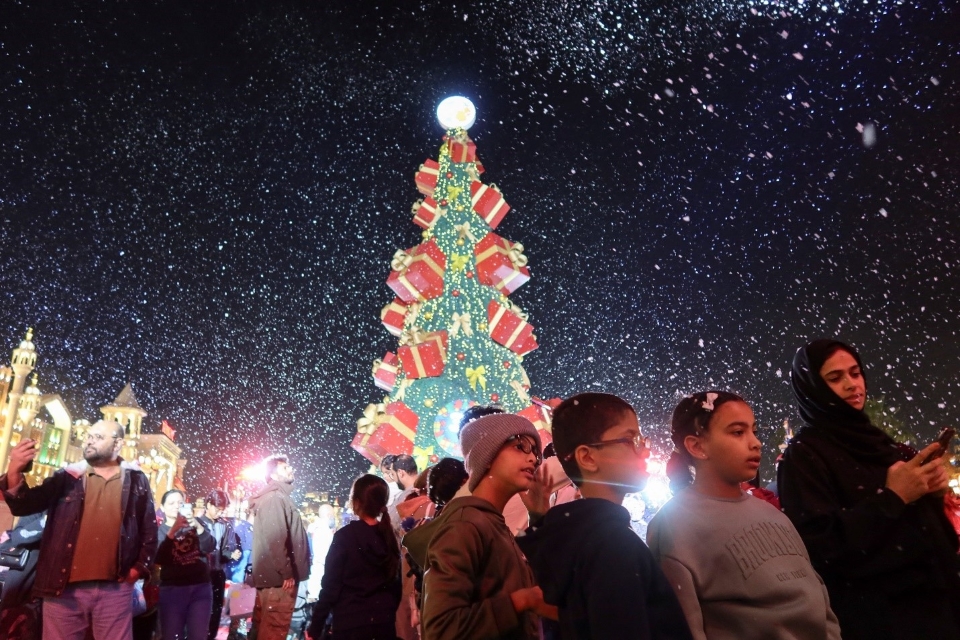 Người dân đi ngang qua cây thông Noel trong khung cảnh trang trí Giáng sinh ở Dubai, Các Tiểu vương quốc Ả Rập Thống nhất, ngày 20/12/2025. Ảnh: REUTERS/Abdelhadi Ramahi |