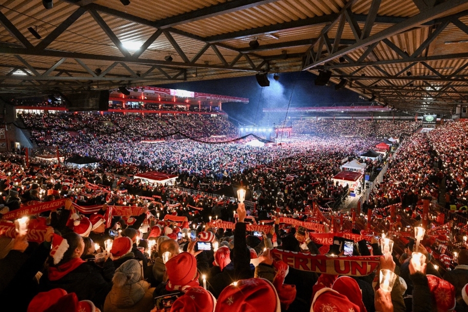 Khung cảnh ấm áp, rực rỡ tại sân vận động An der Alten Foersterei khi người hâm mộ của câu lạc bộ bóng đá Đức 1. FC Union Berlin giơ cao ngọn nến và hát những bài thánh ca Giáng sinh truyền thống ở Berlin, Đức, ngày 23/12/2025. Ảnh: REUTERS/Annegret Hilse |