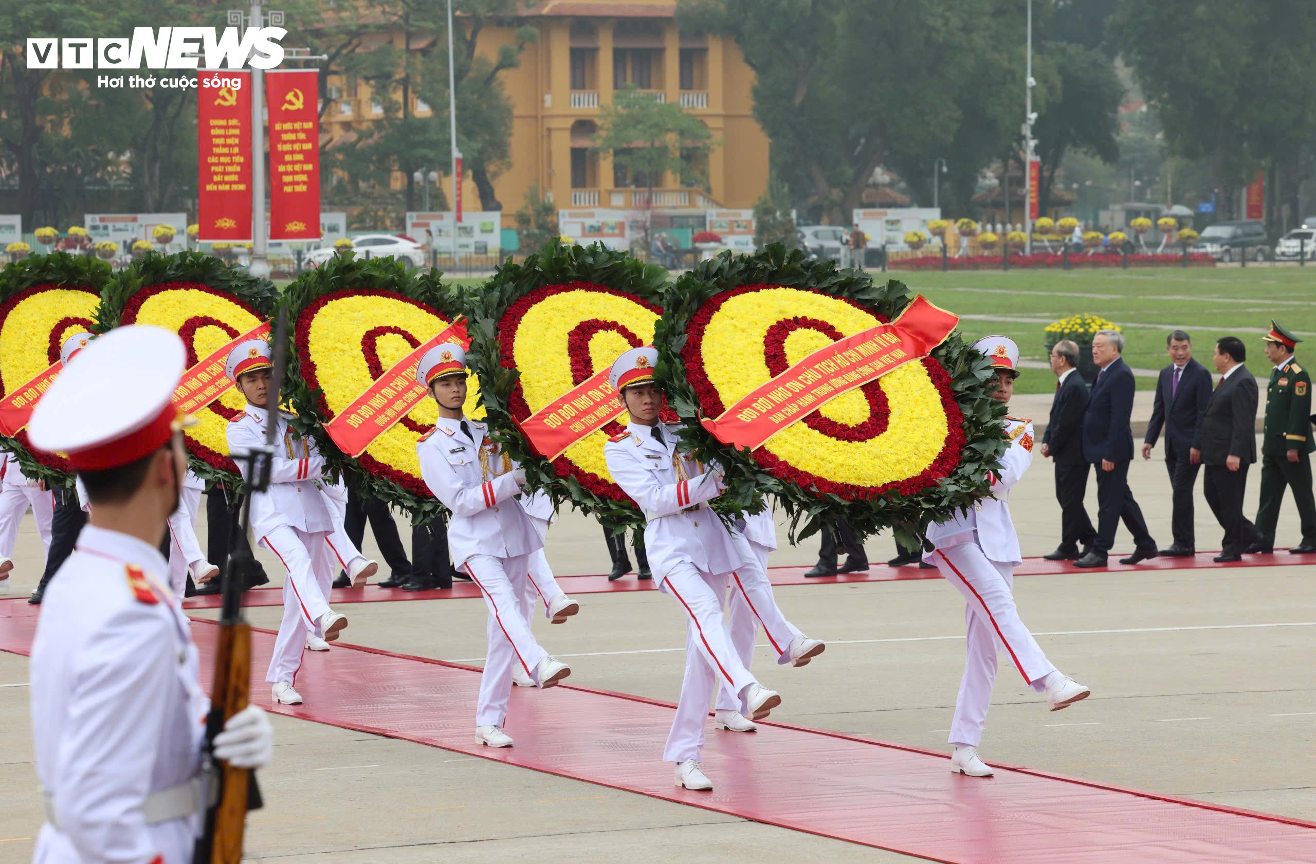 Các lãnh đạo, nguyên lãnh đạo Đảng, Nhà nước đến đặt vòng hoa tưởng niệm các Anh hùng Liệt sĩ.