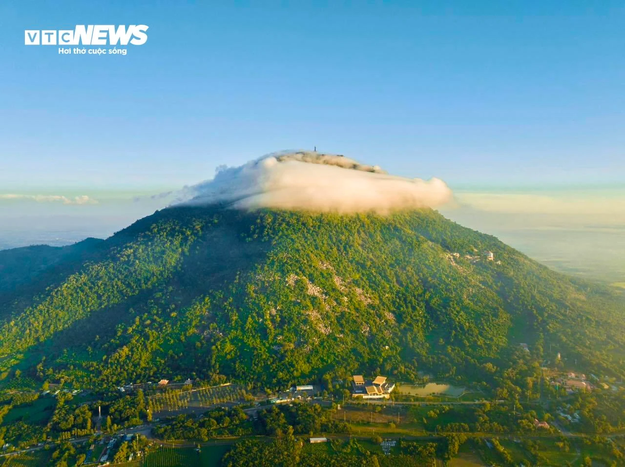 Những lớp mây trắng quấn quanh đỉnh núi, có lúc dày đặc che khuất toàn bộ không gian, có lúc tan ra để lộ các công trình tâm linh phía trên cao. Sự chuyển động liên tục của mây khiến cảnh sắc núi Bà Đen luôn biến ảo, khó lặp lại.