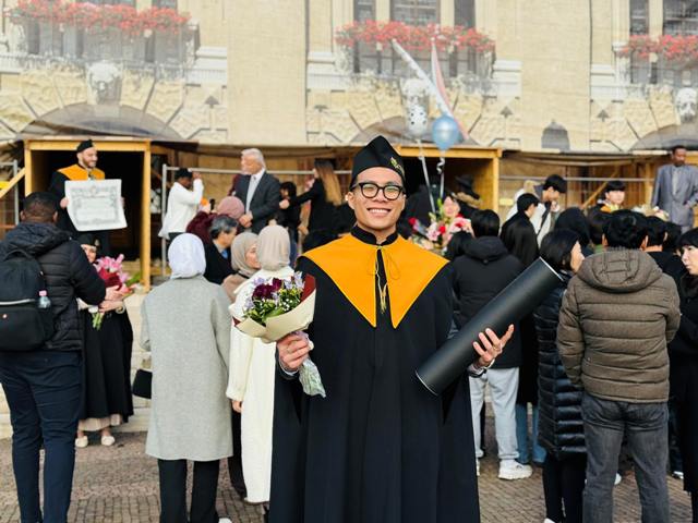 Anh Lê Đình Duy trong lễ tốt nghiệp Đại học y ở Hungary. Ảnh: FBNV