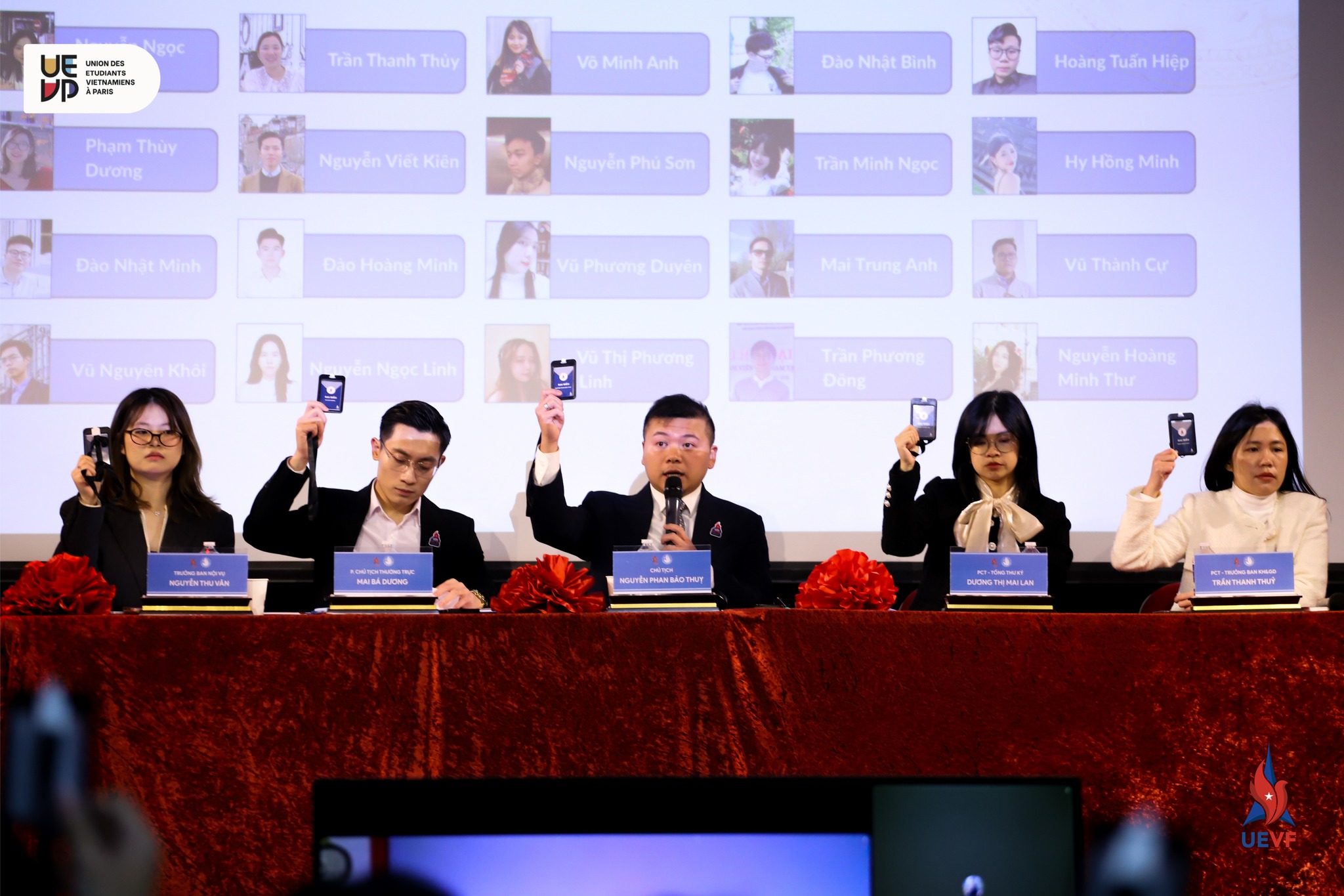 Anh Nguyễn Phan Bảo Thụy ( giữa) tại Đại hội Ban Chấp hành Hội TNSVVN tại Pháp. Ảnh: FBNV |