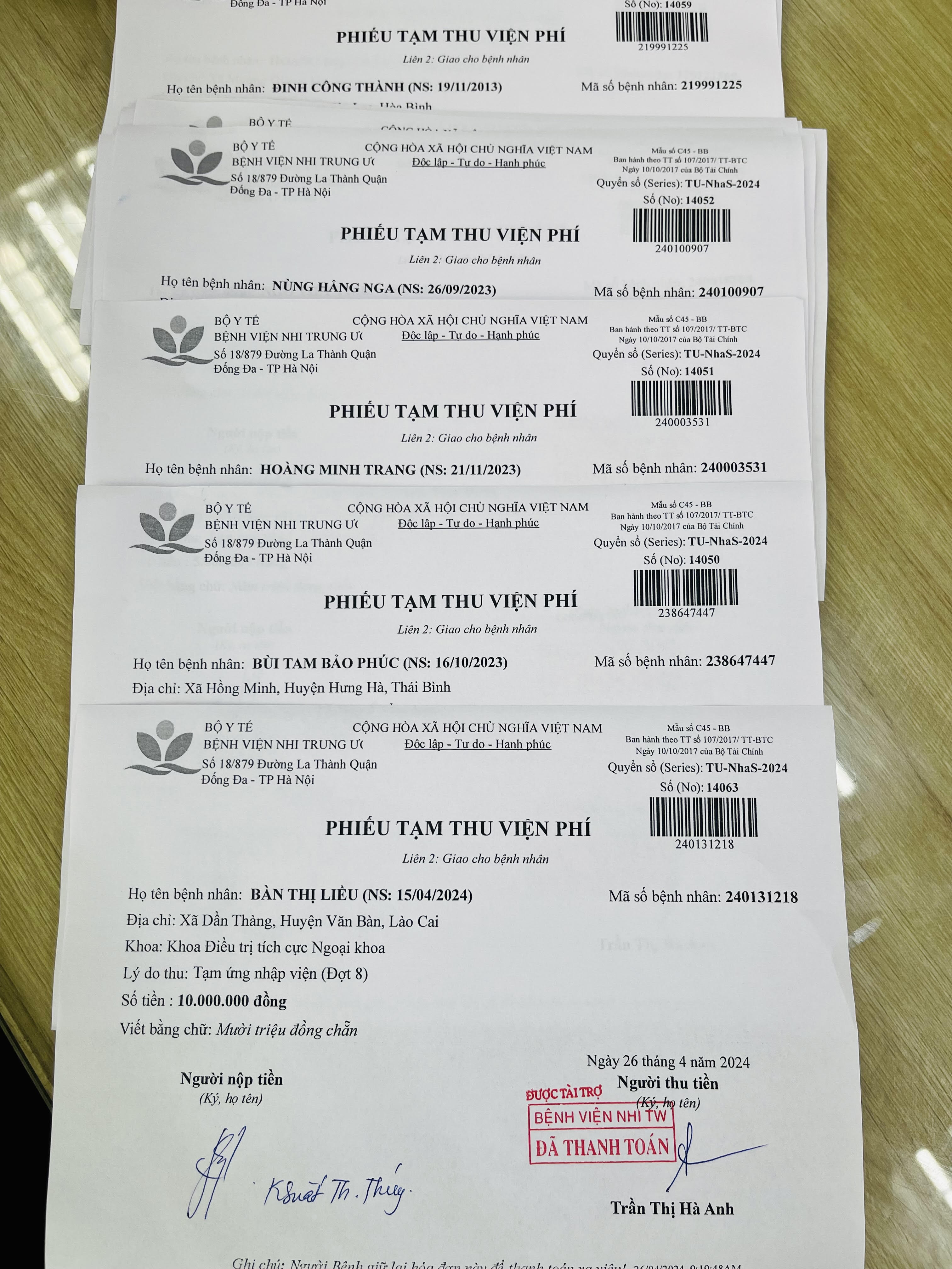 Ngày 26/4, 13 bệnh nhi nặng, có hoàn cảnh khó khăn đang điều trị tại Bệnh viện Nhi Trung ương, Hà Nội đã được hỗ trợ một phần viện phí. Toàn bộ số tiền được trích từ Quỹ thiện nguyện “Hãy yêu nhau hơn”, do chị Khuất Thanh Thúy, kiều bào ở Mỹ sáng lập.