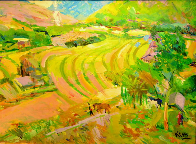 Một bức tranh của họa sĩ Nguyễn Phú Kim trong triển lãm cá nhân “Tranh của Kim”, ngày 25/10/2016 tại Nhà triển lãm Mỹ thuật, số 16 Ngô Quyền, Hà Nội. |