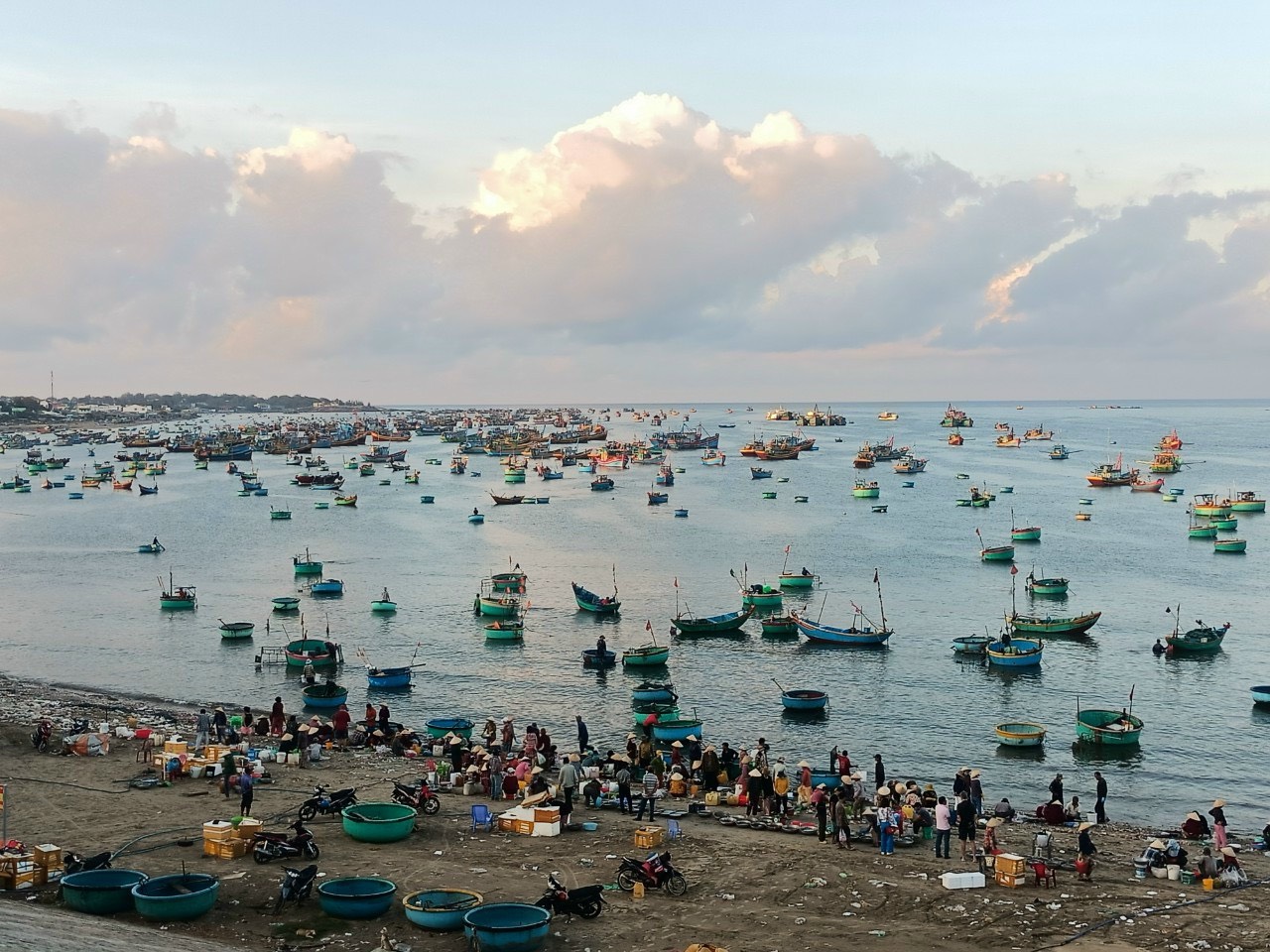 Một góc chợ cá làng chài Mũi Né buổi sáng sớm. |
