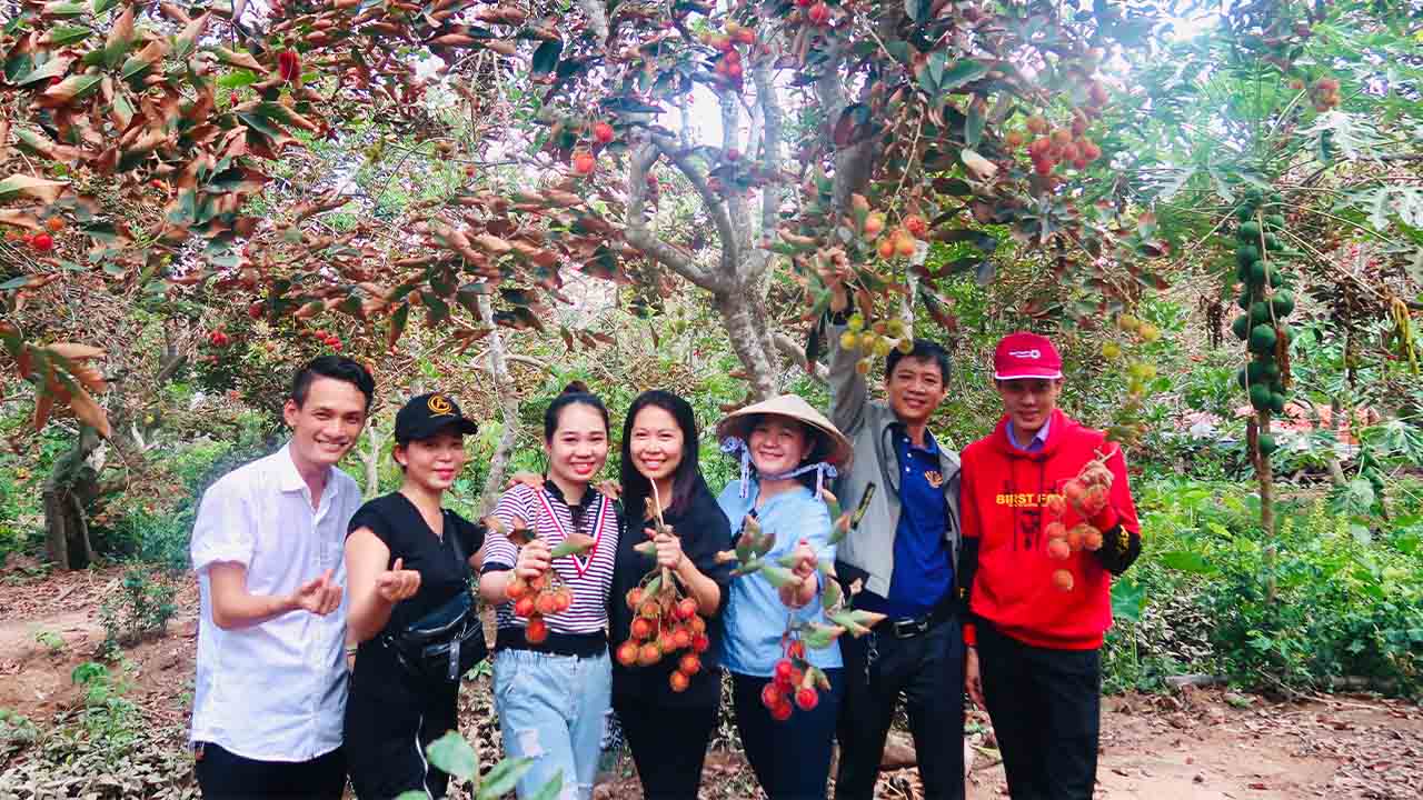 Vườn chôm chôm rộng lớn ở Cồn Sơn - Ảnh: nucuoimekong.com |