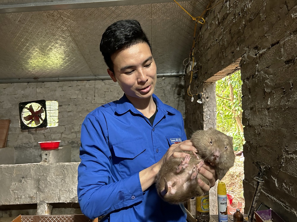 Mỗi năm, gia đình anh Bàn Văn Hồng thu lãi khoảng 100 triệu đồng từ việc bán đàn dúi giống, dúi thương phẩm - Ảnh: VOV