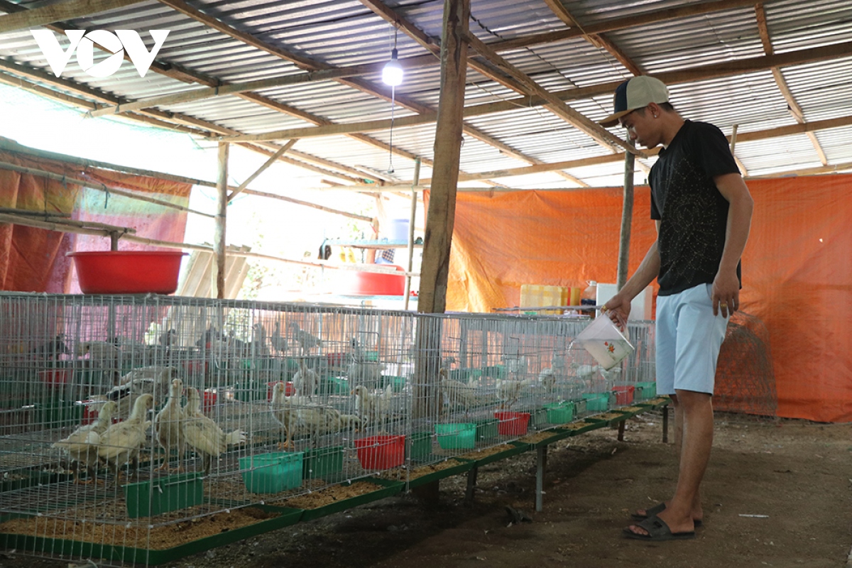 Anh Võ Hoàng Vinh thành công với mô hình nuôi gà Peru - Ảnh: VOV