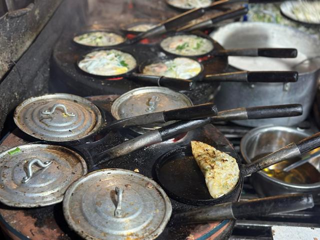 Những chảo đổ bánh xèo hoạt động hết công suất phục vụ khách. |