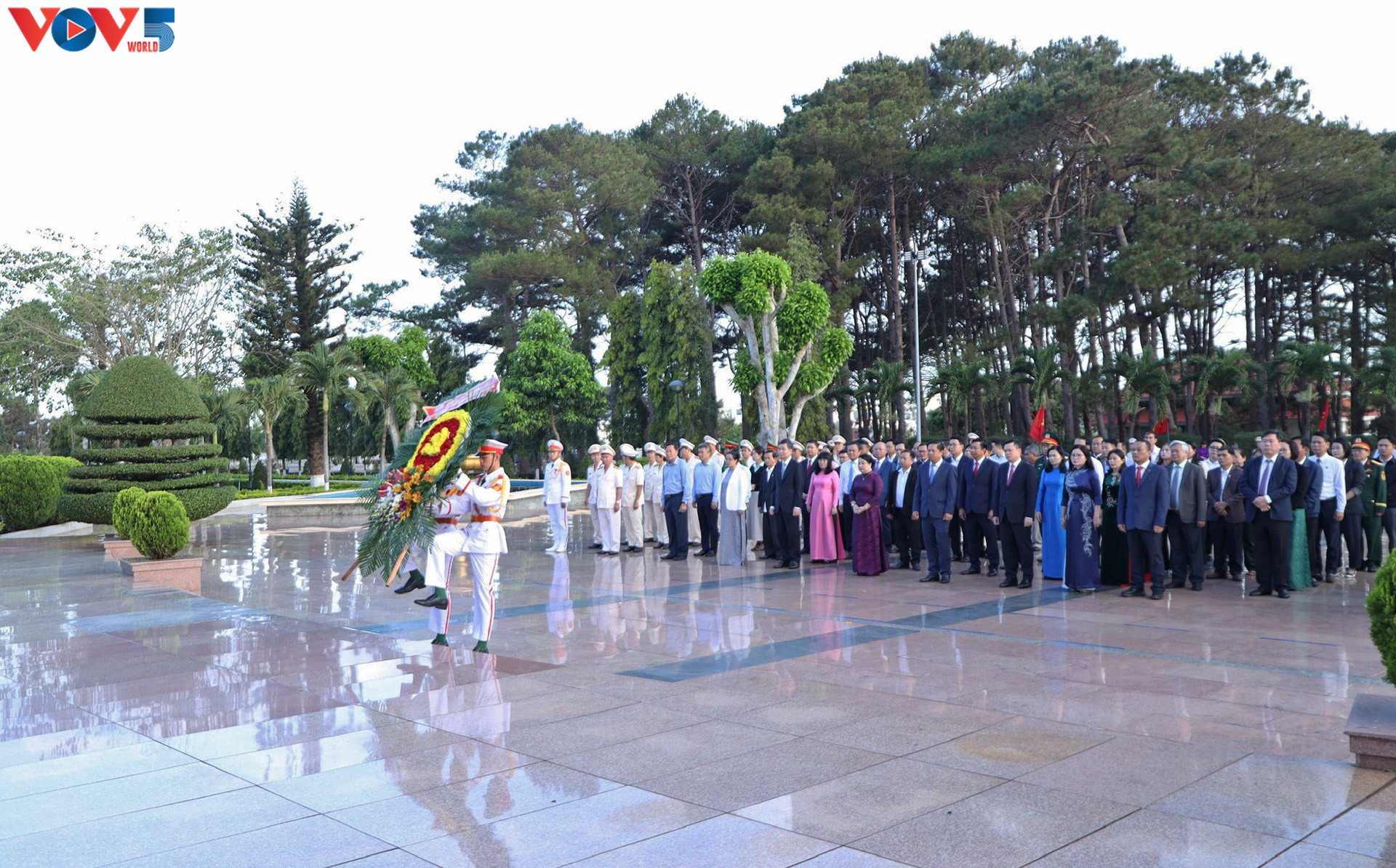 Các đại biểu dâng hoa tại nghĩa trang liệt sĩ tỉnh Đắk Lắk. Ảnh: VOV-Tây Nguyên