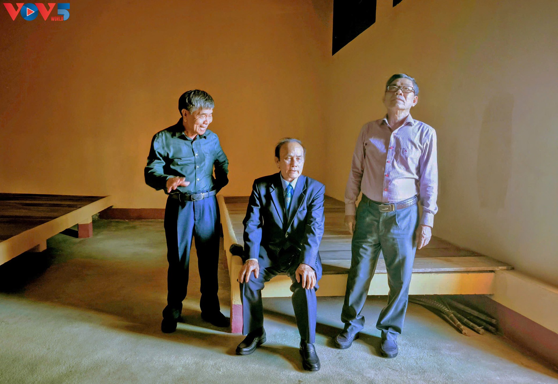 Ông Trần Phương (ngoài cùng bên trái) cùng các đồng đội thăm lại Nhà Đày Buôn Ma Thuột - nơi ông đã từng bị giam giữ vào năm 1972. Ảnh: VOV-Tây Nguyên