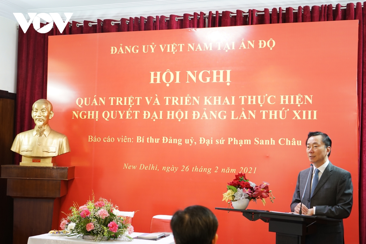 Party Secretary, Ambassador Pham Sanh Chau, who attended at the Congress, presented a report on the outcome of the Congress, main content of the Congress’ documents, and directions to realize the Congress’ Resolution. Chau said the indexes of happiness and people’s benefits are set out as an important goal of the Party and State and that the Congress inspired national aspiration and determination to build up national internal strength. The Congress set a longer and wider vision to raise Vietnam’s status by 2025, 2030, and 2045. These goals are developed on basis of Vietnam’s achievements after 35 years of national renewal, said Chau.