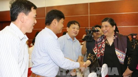 (VOVworld) - 越南国会主席、国家选举委员会主席阮氏金银4月23日就第14届国会代表和2011至2016年任期各级人民议会代表选举工作同海阳省省委常委会举行座谈。