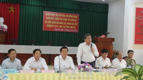 (VOVworld)- 由越南国会副主席汪朱刘率领的国会常务委员会和国家选举委员会检查监督团5月17日检查朔庄省选举准备工作。当天下午,由越南国会常务委员、经济委员会主任阮文饶率领的国会常务委员会和国家选举委员会检查监督团与隆安省选举委员会在该省德和县就该省第14届国会代表及2016至2021年任期各级人民议会代表选举准备工作举行座谈。
