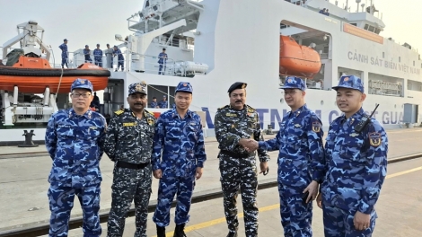 (VOVWORLD) - 海警8005舰及以海警第三区副司令员、参谋长阮明庆大校为团长的越南海警代表团12月16日抵达印度喀拉拉邦(Kerala)科钦市(Kochi),进行友好访问并与印度海岸警卫队交流和借鉴经验。