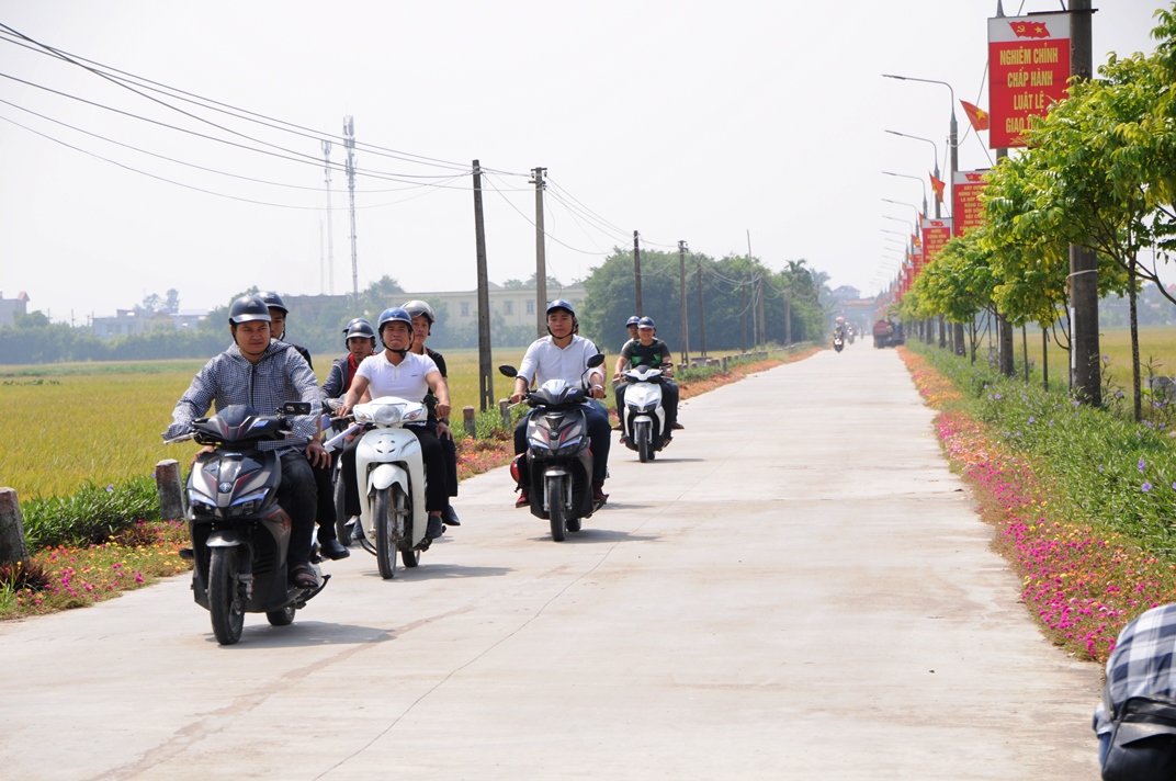 南定省新农村建设项目中的一条鲜花绽放的村路