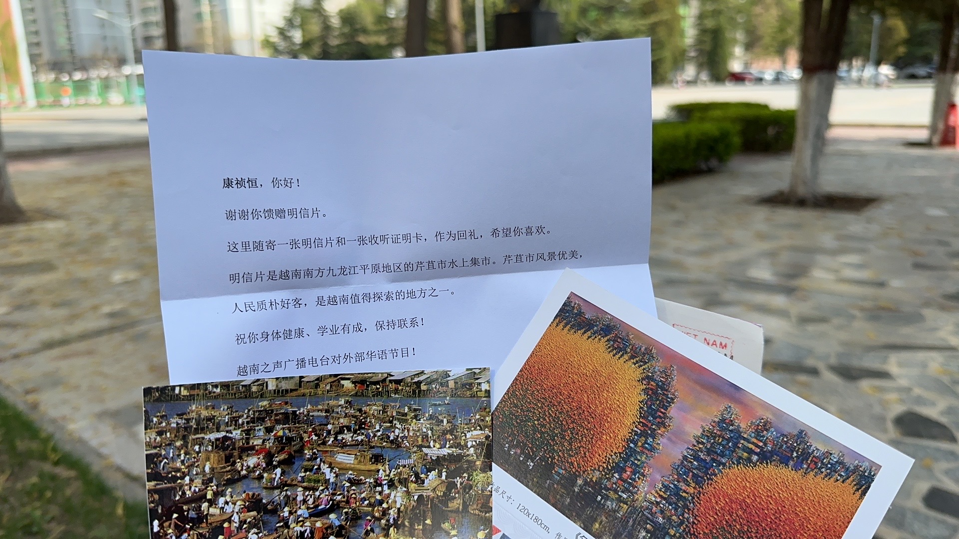 广东省听众洪昱也收到了收听证明卡和明信片。 |