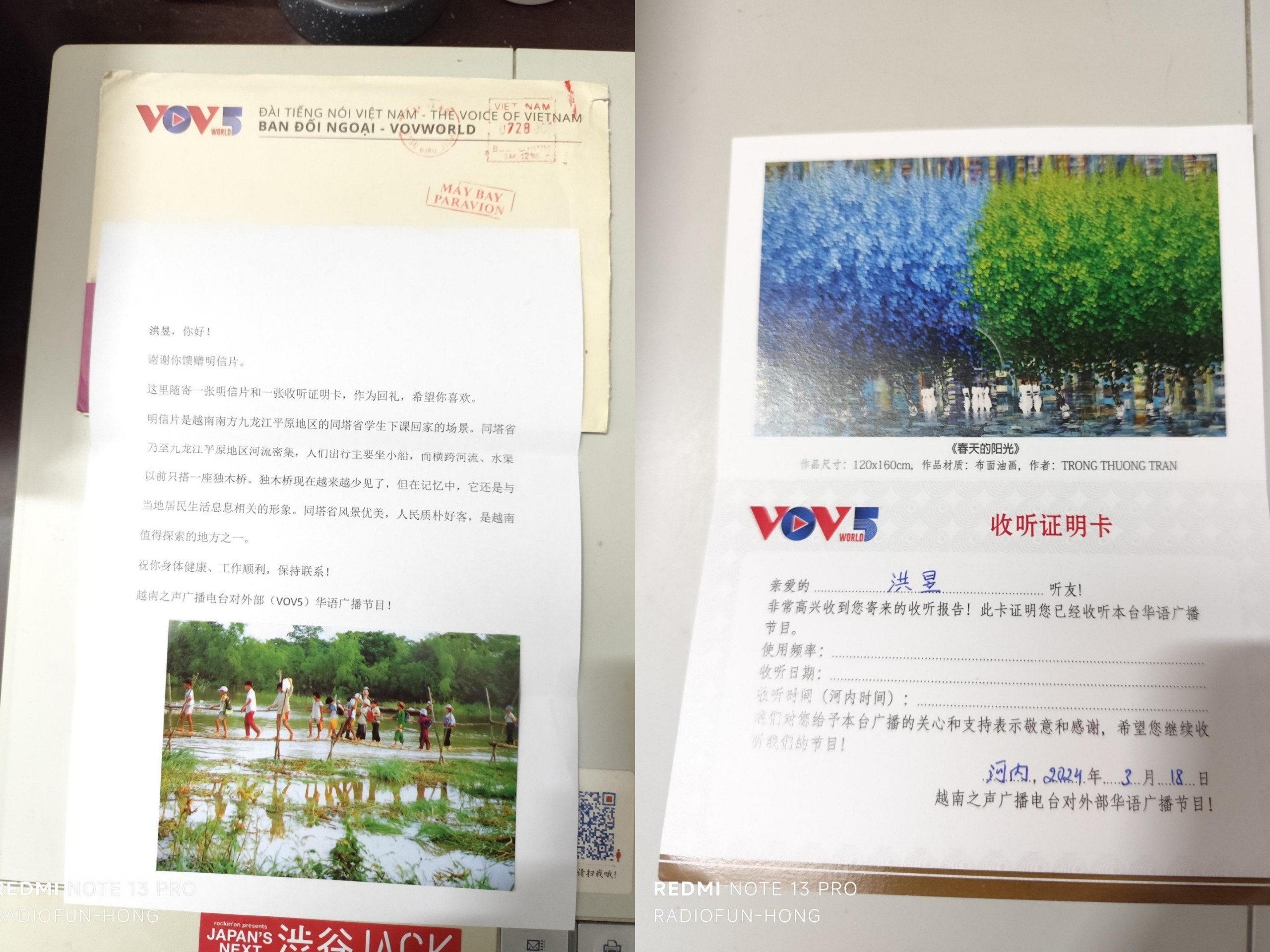听众朋友,每次给新朋友填发收听证明卡,我们都非常高兴。不只是因为结识新朋友,更是因为我们越南之声的节目,乃至越南国家和人文一直得到各地朋友的关心和支持。我们非常希望各位朋友未来继续保持与我们的联系与互动。