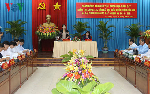 阮氏金银高度评价安江省为开展第14届国会和2016至2021年各级人民议会代表选举计划作出积极和周密的准备。阮氏金银要求该省认真开展选举工作,确保公平、民主、客观。