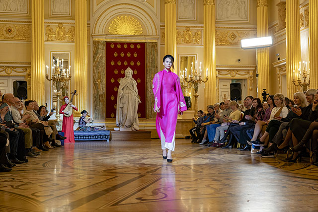 设计师明幸带来了越南达渥族(Ta Oi)土锦和越南丝绸的70多套设计款式。这些款式带有浓郁的越南民族文化特色,集传统和现代于一身。