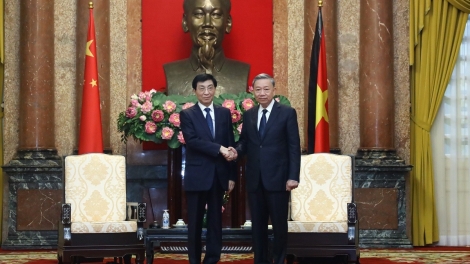 (VOVWORLD) -25日午後、ハノイ市内の国家主席府で、トー・ラム国家主席は、グエン・フー・チョン党書記長の葬儀に参列するため、ベトナムを訪問中の中国共産党中央政治局常務委員で全国政治協商会議主席の王滬寧氏と会見しました。