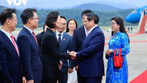 (VOVWORLD) - 6月30日、ソウルで、韓国を訪問中のファム・ミン・チン首相夫妻は在韓国ベトナム大使館の幹部、職員と懇親を深めました。
