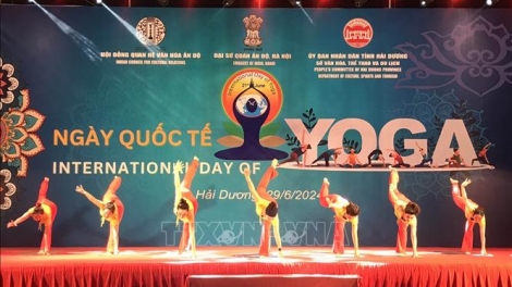 (VOVWORLD) - 6月29日夜、北部ハイズオン省で、在ベトナムインド大使館のインド文化関係評議会は同省人民委員会と文化スポーツ観光局の協力を受け、6月21日の「国際ヨガの日」10周年を記念する式典を行いました。