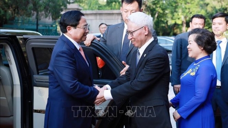 (VOVWORLD) - 26日、中国・北京の人民大礼堂で、ファム・ミン・チン首相はWEFの第15回ニュー・チャンピオン年次総会への出席に際し、中国の習近平党総書記兼国家主席と会見しました。