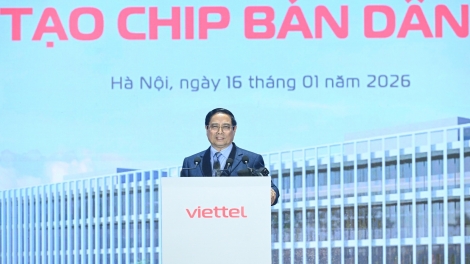 (VOVWORLD) -16日午前、ハノイのホアラック・ハイテクパークで、ベトナム初となる半導体チップ製造工場の起工式が執り行われ、トー・ラム党書記長とファム・ミン・チン首相が出席しました。