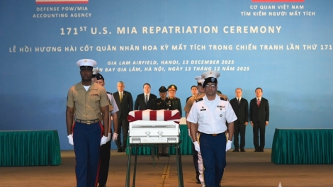 (VOVWORLD) - 13日午前、ハノイのザーラム空港で、ベトナム戦争で行方不明となった米兵(MIA)の第171回遺骨返還式が行われました。これは、ベトナム・アメリカ国交樹立30周年を記念する行事の一つです。