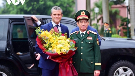 (VOVWORLD) - 2日午後、ハノイの国防省本部で、ファン・ヴァン・ザン国防大臣は、ベトナムを訪問中のアメリカのピート・ヘグセス戦争長官の歓迎式を主宰しました。