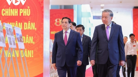 (VOVWORLD) -8月20日午前、ハノイで、ベトナム社会主義共和国の政府樹立80周年記念式典が盛大に開催されました。式典には、トー・ラム党書記長、ルオン・クオン国家主席、ファム・ミン・チン首相、チャン・タイン・マン国会議長らが出席しました。