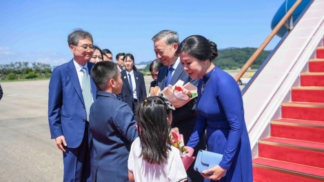 (VOVWORLD) - トー・ラム党書記長夫妻は、ベトナムの高級代表団とともに、10日午後、ソウルの城南(ソンナム)軍用空港に到着し、10日から13日までの日程で韓国を国賓として訪問します。