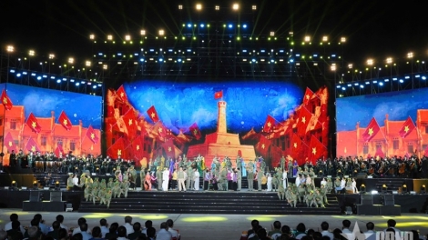 (VOVWORLD) - 9日夜、北部、中部、南部の全国3地域で「栄光の旗の下で」をテーマにした政論・芸術イベントが開催されました。