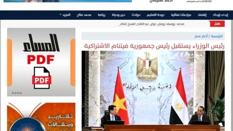 (VOVWORLD) -5日付けのエジプトの国営メディアおよび主要紙は、ベトナムのルオン・クオン国家主席夫妻による国賓訪問の主要な活動について、一斉に大きく報じました。