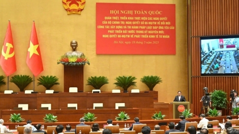 (VOVWORLD) - 5月18日朝、ハノイで党中央政治局と書記局は、国家の新時代の発展要請に応える法整備・執行改革に関する決議66号、および民間経済の発展に関する決議68号を貫徹・展開する全国会議を開催しました。