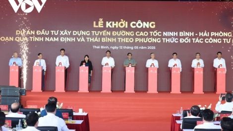 (VOVWORLD) - 12日午前、北部タイビン省でファム・ミン・チン首相はニンビン~ハイフォン高速道路建設プロジェクトのナムディン省とタイビン省を通過する区間の起工式と、タイビン省フンフー工業団地の起工式に出席しました。