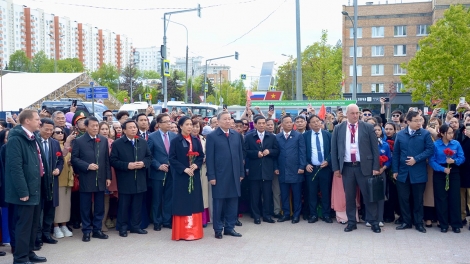 (VOVWORLD) - 現地時間の10日午後、ロシアの首都モスクワでトー・ラム書記長夫妻は、ホーチミン広場にあるホーチミン主席の銅像、およびレー・ズアン広場にあるレー・ズアン書記長の記念碑に献花しました。
