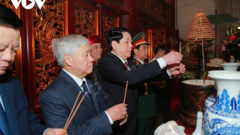 (VOVWORLD) -「ベトナム建国の祖」フン王の命日である旧暦3月10日にあたる4月7日午前、ルオン・クオン国家主席がフン王を追悼する伝統行事に参列しました。