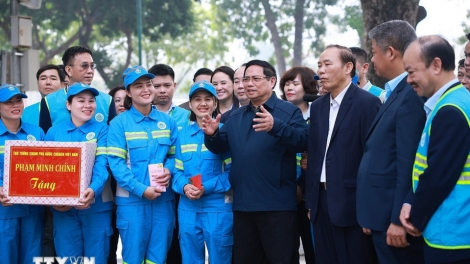 (VOVWORLD) - 旧正月テトを前に、15日午前、ファム・ミン・チン首相は、ハノイ市の都市環境公社を訪れ、作業員を激励しました。