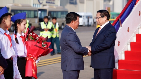 (VOVWORLD) -現地時間の 9日午前、ファム・ミン・チン首相率いるベトナム代表団は、ラオスの首都ヴィエンチャンに位置するワットタイ国際空港に到着し、ベトナム・ラオス政府合同委員会の第47回会議の共同主催およびラオス訪問を開始しました。