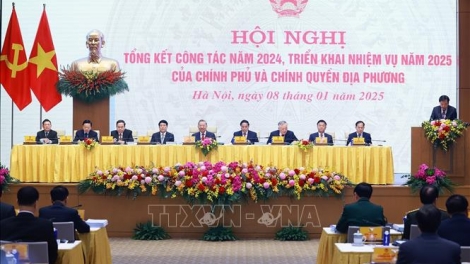 (VOVWORLD) - 8日午前、政府本部で、政府と地方行政府の2024年の活動総括、および2025年の任務展開に関する会議が、行われ、中央直轄の63の省・市へネット配信されました。