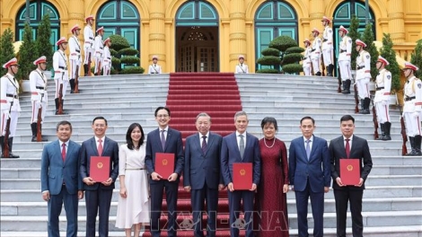(VOVWORLD) -18日午後、ハノイ市内の国家主席府で、トー・ラム党書記長・国家主席は、国連とカンボジア、シンガポール、およびウクライナに駐在するベトナム大使館の大使に任命の決定書を引き渡しました。