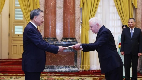 (VOVWORLD) - 12日午前、ハノイでトー・ラム党書記長・国家主席は、ベトナムに着任したアルゼンチン、アルジェリア、ドイツ、朝鮮民主主義人民共和国、スウェーデンの5カ国の新任大使から信任状を受領しました。