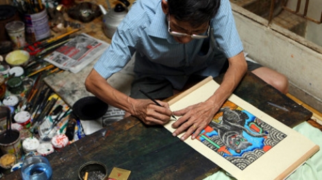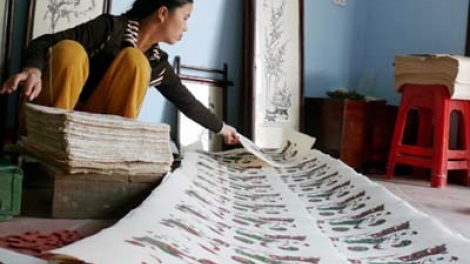 シン村のお年寄りによりますと、ベトナム最後の王朝、グエン朝時代に、ベトナム北部からフエに南下して来た人の中に、版画職人がいたそうなんです。その職人が木版画制作をシン村で始めて、シン版画が生まれたということです。