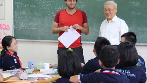ハノイ市内の私立グェンシュウ学校の教師グェン・チョン・ビンさんと各世代の教師陣は、グェンシュウ小・中・高校学校をハノイ市内で最高質の学校に発展する為に全力を尽くしてきました。