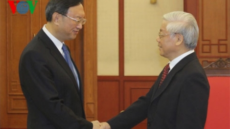 18日、ハノイで、ベトナムのグェン・フー・チョン共産党書記長はベトナムを訪問中の中国の楊潔チ(よう・けつち)国務委員と会見を行いました。